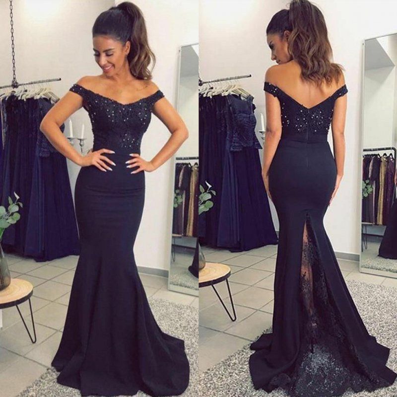Black Mermaid Bridesmaid Off The Shoulder Prom Evening Dresses