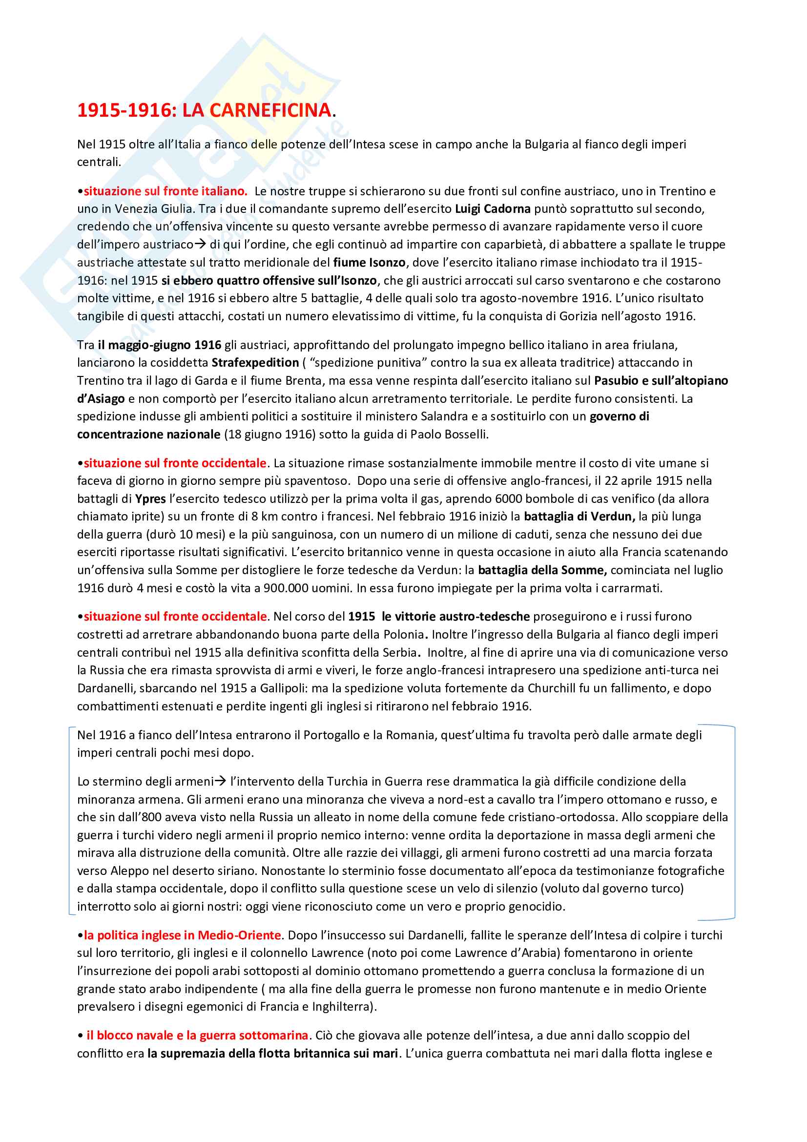 Riassunto Prima Guerra Mondiale Docsity
